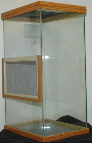 Beautifully designed glass habitat with a 1/2 glass, 1/2 screen sliding top and a sliding screen side! Perfect for small geckos, frogs, spiders and more!
