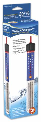 Automatically sets and maintains your desired temperature. For 20 gallon aquariums. Accurate to 1 degree. Fully submersible. Factory set to 76 degrees. Just plug it in!